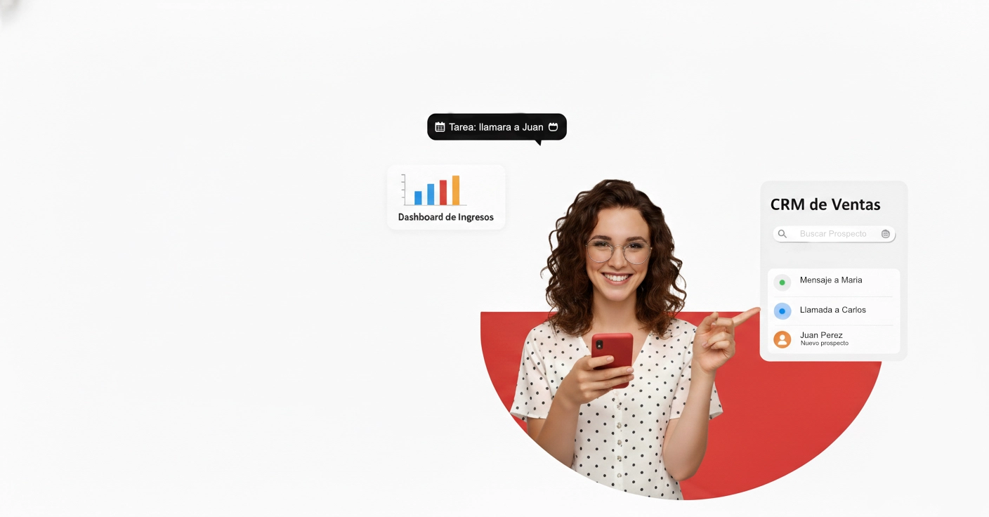 Centraliza tus prospectos, automatiza seguimientos y aumenta tus cierres de venta. Nuestro CRM inteligente te permite administrar, organizar y dar seguimiento a todos tus leads desde un solo lugar.